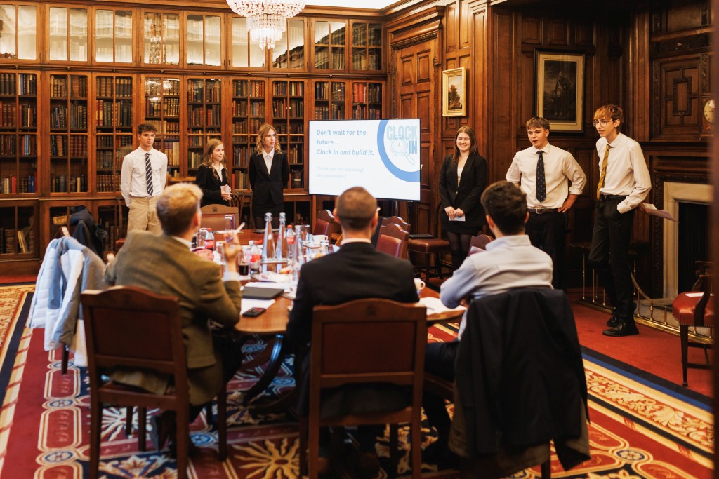 Finally came the day of the competition, where we travelled to the Merchant Taylors’ Hall in London. We felt so honoured to even be in such a beautiful building, let alone get the chance to speak to three highly esteemed judges who we presented our idea to, as well as conferring with other competing schools. The atmosphere was full of excitement and nerves from the minibus, to the train, to Pret where we had lunch! We spent the day rehearsing, enjoying the provided snacks, and getting to know our way around the building. The day was extremely productive, but we still had our fair share of laughs. Even though we didn’t win, the experience and skills gained will stick with us for the rest of our lives. We are so grateful to have been a part of the Livery Academy Awards and if given the chance would definitely do it again.