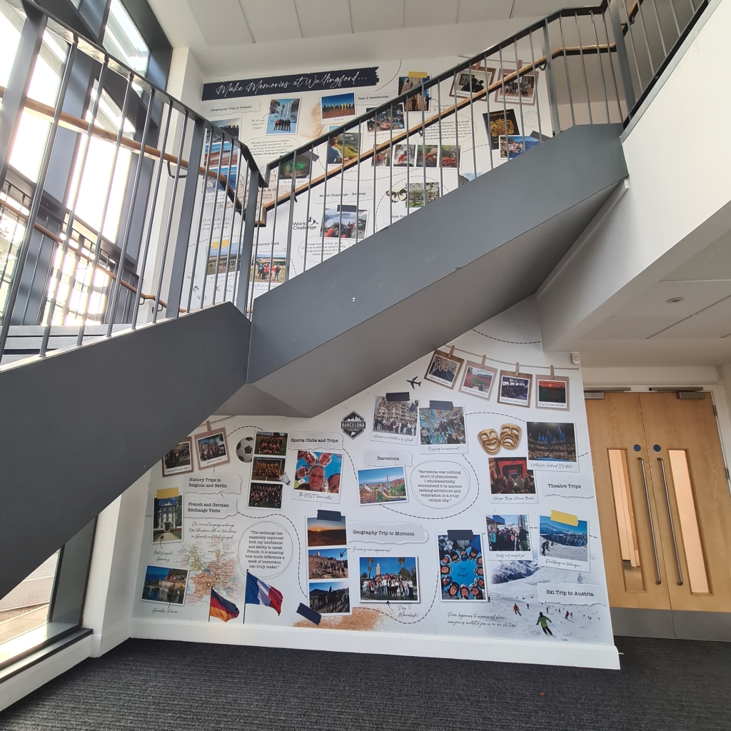 It has been great this week to see the new displays in W blocks and K block which are wonderful visual depictions of the life of our school. They tell the stories of trips and destinations, concerts and performances and show our young people having great experiences, genuine personal development – and fun! The walls almost feel alive and the spirit of Wallingford School pervades. Thank you to our team who have driven this forward as everyone in school has been talking about how impressive it all looks during this week.